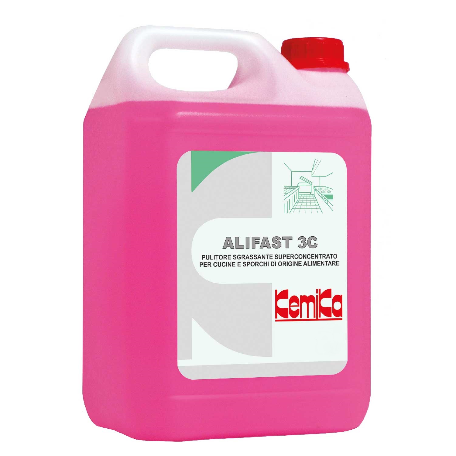 Fast superconcentrated cleaner for kitchen surfaces and food industry. The concentrated form (3C) is to be used with dosing systems.