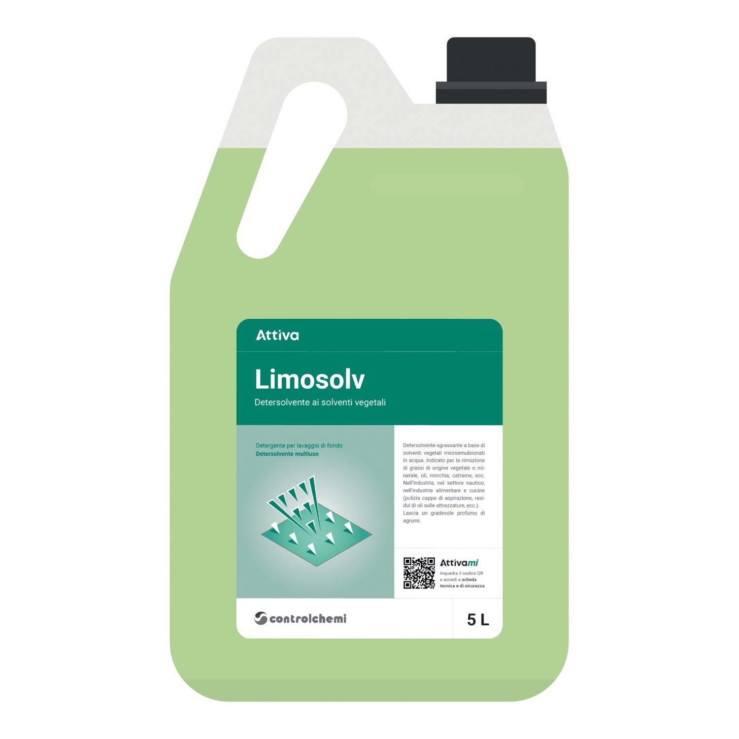 Detersolvente sgrassante a base di solventi vegetali microemulsionati in acqua. Indicato per la rimozione di grassi di origine vegetale o minerale, oli, morchia, catrame, ecc. Nell’industria, nel settore nautico, nell’industria alimentare e cucine (pulizia cappe di aspirazione, residui di oli sulle attrezzature, ecc.).